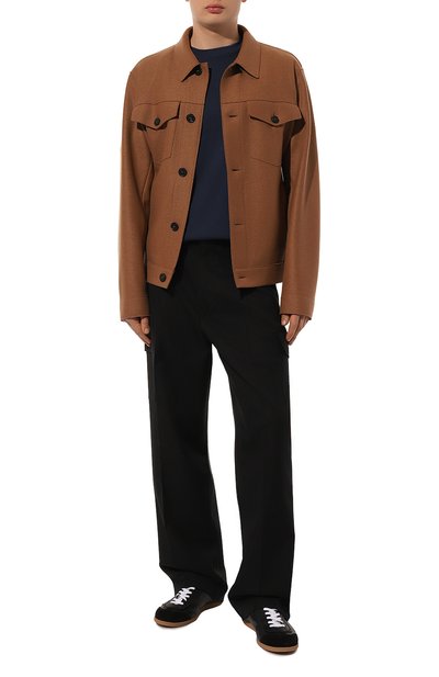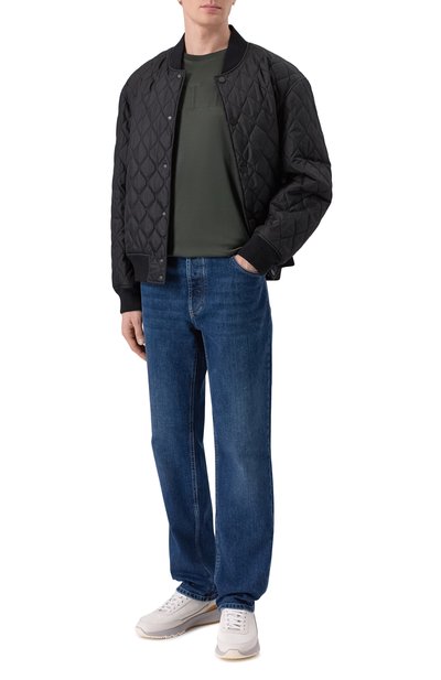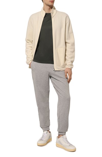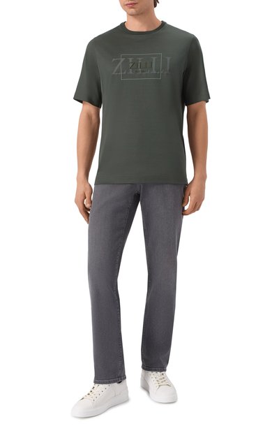 Для создания футболки с небольшими боковыми разрезами выбрали шелковистое хлопковое джерси. Спереди модель прямого кроя украсили брендированной вышивкой в тон.
