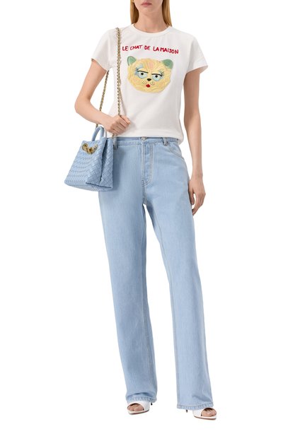 Футболку украсили небольшой накладкой-монограммой DG и контрастными аппликациями из цветочного кружева Cordonetto. Модель из рифленого хлопкового трикотажа вошла в коллекцию DNA.