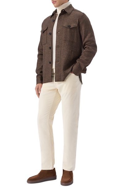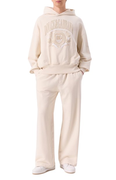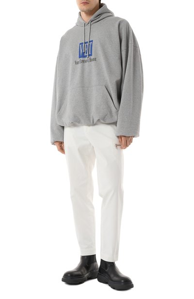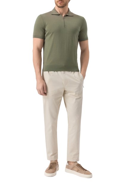 Брюки из коллекции DNA украсили фирменной двухслойной пластиной на прорезном кармане спереди. Модель из эластичного хлопкового габардина дополнили патами внизу брючин.