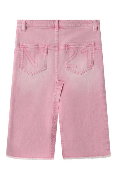 Джинсовая юбка с разрезами с двух сторон выполнена из выбеленного хлопкового денима с потертостями. Модель с тремя карманами украшена сзади брендированным патчем.