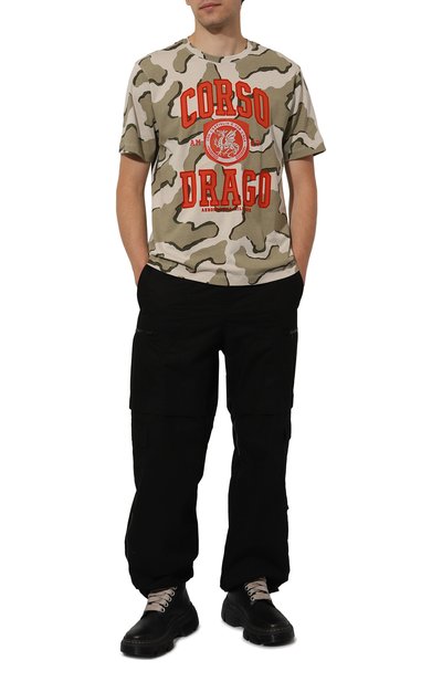 Футболку выполнили из хлопкового джерси с камуфляжным принтом. Спереди разместили брендированную нашивку и вышитого фирменного орла, вдохновленного символикой ВВС Италии. Левый рукав дополнили патчем с эмблемой 155-й эскадрильи «Черные пантеры».