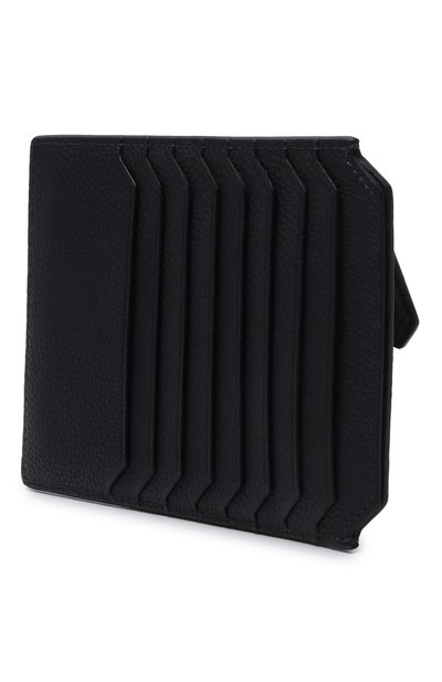 Для изготовления футляра с небольшим золотистым логотипом использовали матовую зернистую кожу. В аксессуаре предусмотрели девять слотов для карт и небольшой карман на молнии.