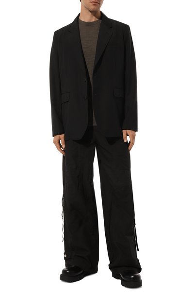 Рифленую футболку T-Hans сшили из хлопкового трикотажа с добавлением эластана. Модель обработали в готовом виде, сформировав выбеленный оттенок и заломы.