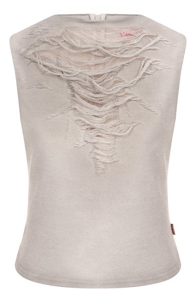 Топ T-Yasmina сшили из эластичного хлопка с добавлением полиэстера. Приталенная модель с декоративными потертостями на груди застегивается потайной молнией сзади.