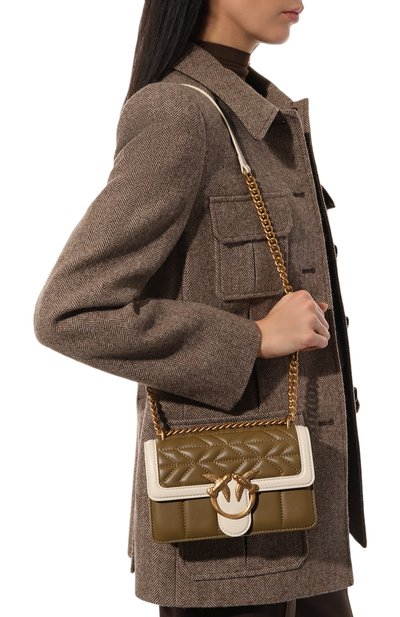 Сумку Scrunch-D с двумя отделениями, в одном из которых разместили карман на молнии, сшили из канваса с декоративными потертостями. Концы регулируемого плечевого ремня продели в кулиски по бокам. Спереди модель украсили драпировкой и пряжкой-эмблемой.