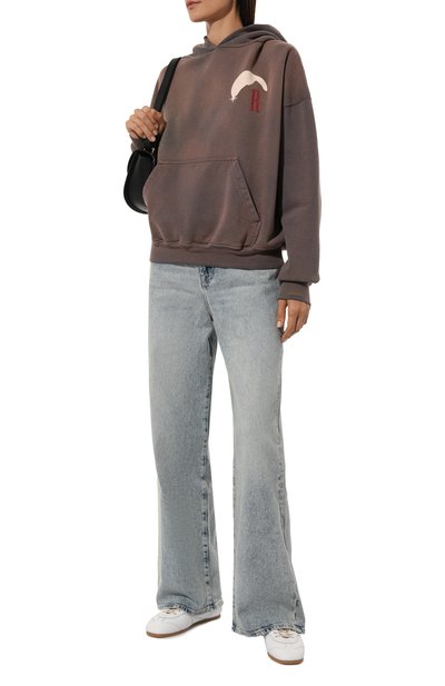 Рваные широкие джинсы Low Slung Wide Leg с заниженной посадкой сшиты из хлопкового денима с потертостями. Модель с пятью карманами украшена сзади брендированным патчем.