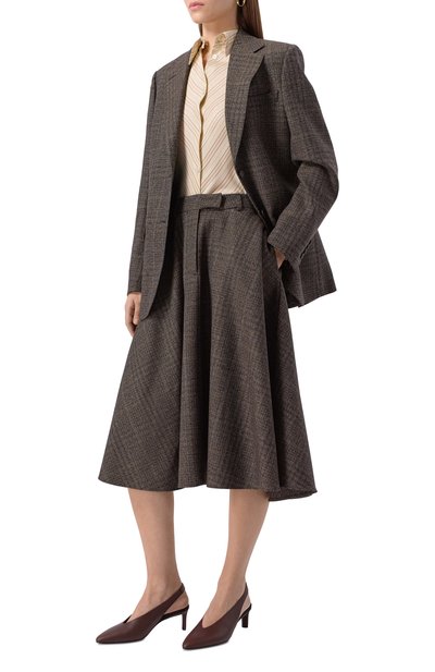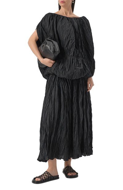 Миди-юбку с врезными боковыми карманами выполнили из хлопкового поплина. Модель дополнили широким эластичным поясом, поэтому она не нуждается в застежке.