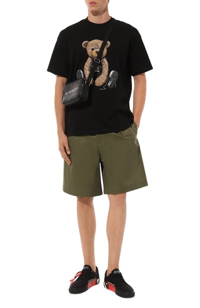 Футболку Dollars прямого кроя выполнили из хлопкового джерси плотностью 200 г/м². Модель с круглой горловиной украсили спереди и сзади фирменными принтами и ручной вышивкой.