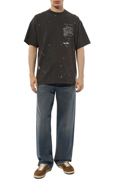 Футболку с горловиной в рубчик сшили из хлопкового джерси. Спереди модель украсили принтом в виде фирменного плюшевого медвежонка со словом «Любовь» и логотипом марки, которым вторит надпись сзади.