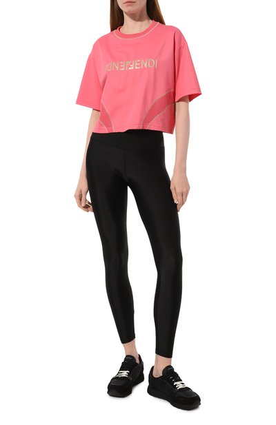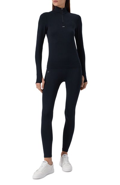 Легинсы с широким поясом, подходящие для тренировок средней интенсивности, сшили из эластичного дышащего материала Airbrush. Изделие, немного моделирующее силуэт, украсили миниатюрным логотипом сбоку.