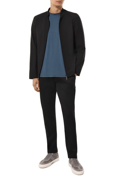 Футболка с круглой горловиной и рукавами реглан поддержит комфортные повседневные образы. Для пошива модели использовали меланжевый трикотаж из чистой шерсти.