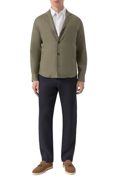 Для пошива пиджака использовали вискозный атлас с легким жатым эффектом. Модель дополнили нагрудным карманом с листочкой и двумя боковыми карманами с клапанами.