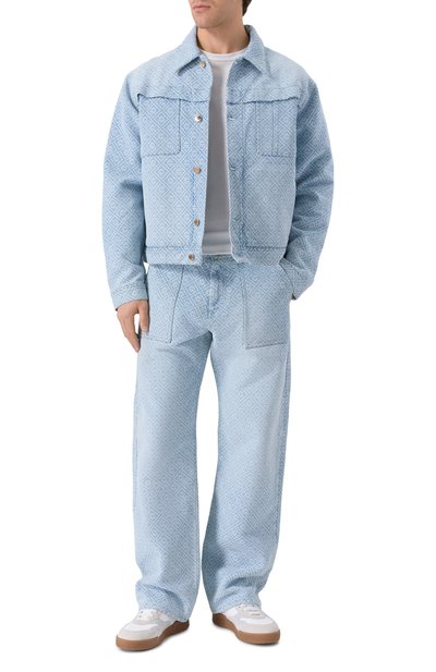 Куртку с брендированными пуговицами сшили из выбеленного денима. Модель с регулируемыми манжетами дополнили боковыми карманами и накладными нагрудными с клапанами.