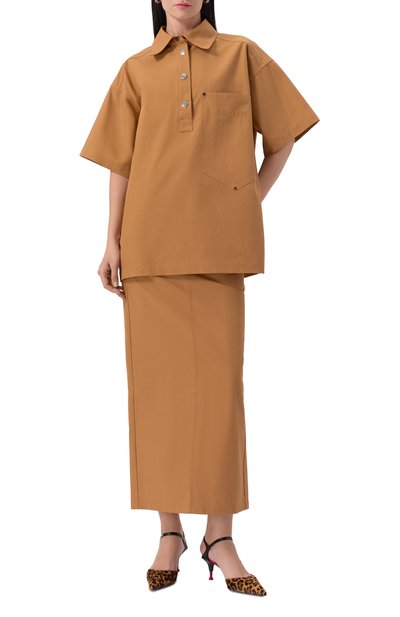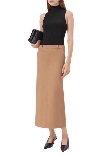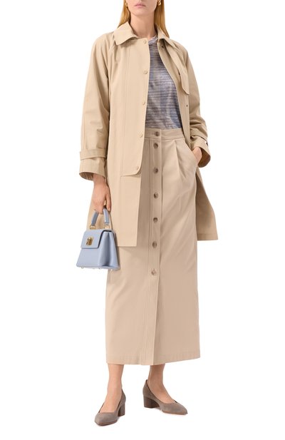 Миди-юбку Iglesias с высокими разрезами по бокам сшили из смеси вискозы и льна. Модель высокой посадки дополнили четырьмя врезными карманами и со шлевками для ремня.
