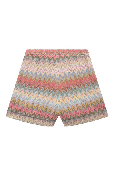 Шорты с широким поясом сшиты из эластичного полиэстера. Изделие с вискозным подкладом украшено сперед и ромбовидным кристальным узором с эмблемами марки. Модель застегивается потайной молнией сзади.