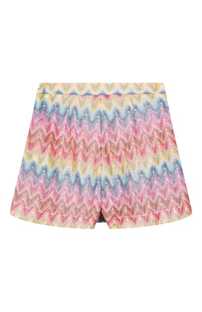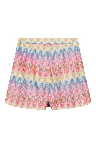 Шорты с широким поясом сшиты из эластичного полиэстера. Изделие с вискозным подкладом украшено спереди ромбовидным кристальным узором с эмблемами марки. Модель застегивается потайной молнией сзади.
