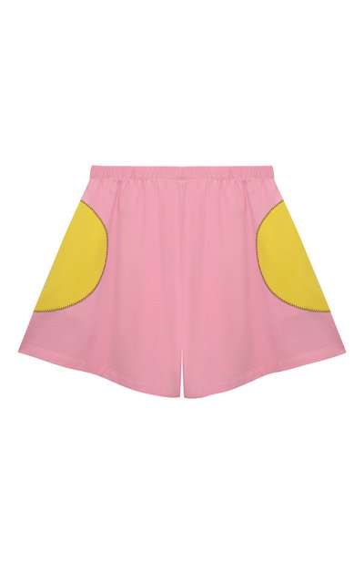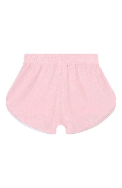 Шорты с эластичным поясом и фигурным низом сшили из хлопкового футера. Блеск модели добавили фирменной литерой В, выложенной полупрозрачными стразами спереди.