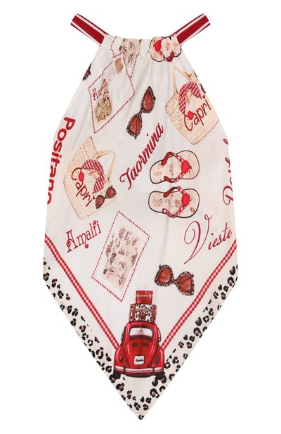 Топ из хлопкового поплина дополнили плиссированными накладками с цветочным принтом Holiday. Модель с круглой горловиной застегивается потайной молнией на спинке.