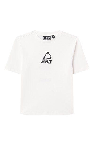 Комплект выполнен из тонкого хлопкового джерси. Футболка прямого кроя и шорты с двумя карманами и поясом-кулиской украшены крупными фирменными принтами.