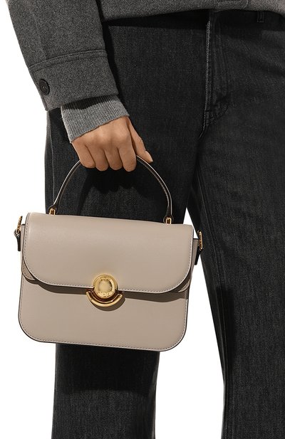 Сумку Venezia с короткой ручкой выполнили из яловой кожи. Аксессуар с двумя отделениями и слотом закрывается клапаном на брендированный замок-защелку. В комплекте — регулируемый плечевой ремень.
