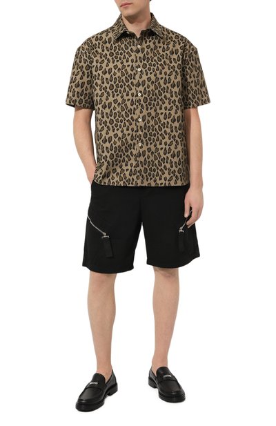 Хлопковые шорты длиной ниже колена словно обрезали вручную, оставив необработанными края. Выбеленные бермуды с тремя карманами и шлевками на поясе декорировали потертостями и брызгами краски.