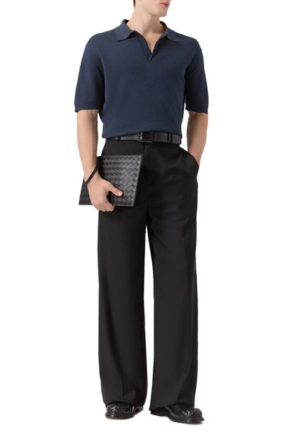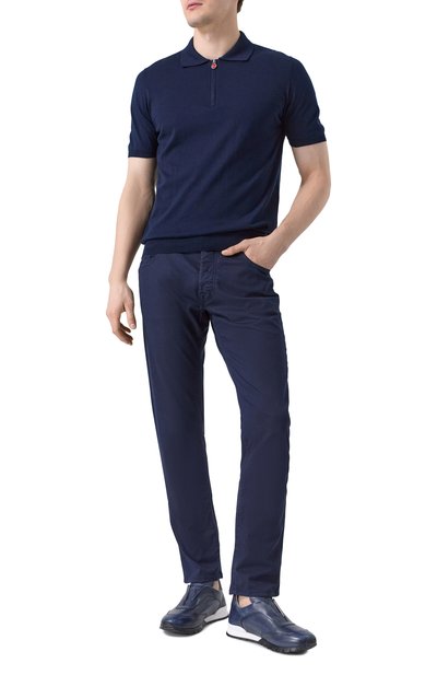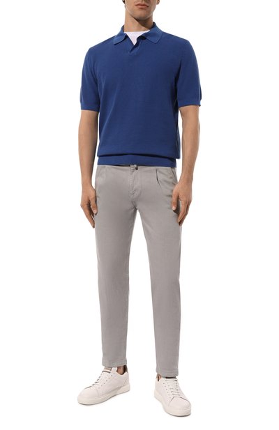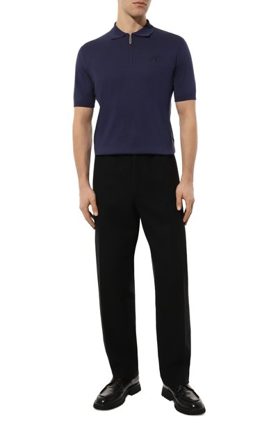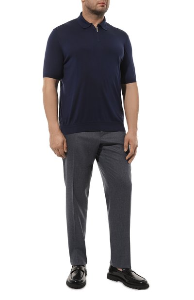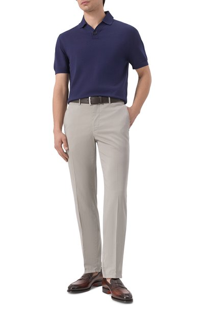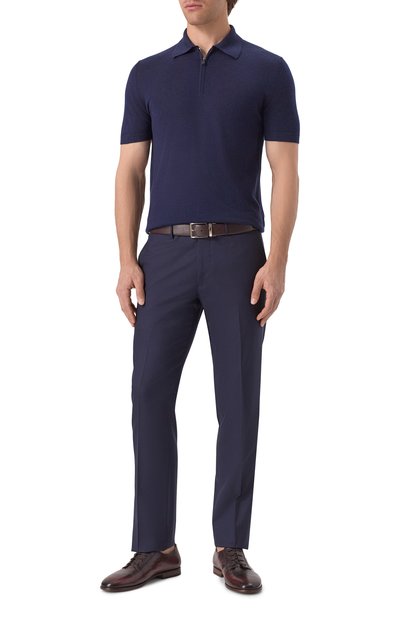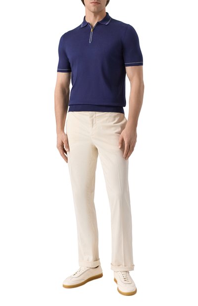 Поло с V-образным вырезом и отделкой в мелкий рубчик изготовили из трикотажа на основе длинноволокнистого хлопка Sea Island. Модель органично дополнит casual-образ и в светлой, и в темной гамме.