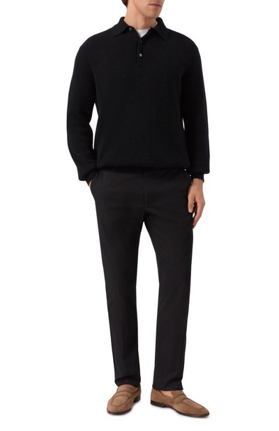 Лоферы на литой подошве сшили из бархатистой замши. Ремешок на союзке модели украсили брендированной пряжкой, а задник — фигурной накладкой из кожи каймана.