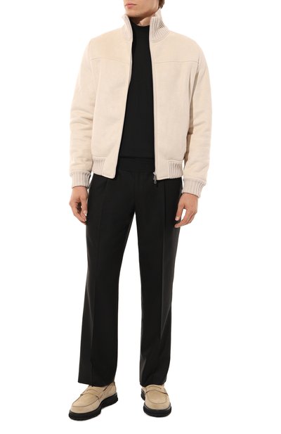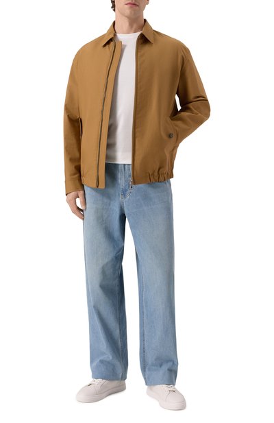 Бомбер Sound с манжетами, поясом и воротником-стойкой в рубчик сшили из немнущегося эластичного нейлона. Модель с вентиляционными отверстиями по бокам и герметичной застежкой дополнили двойными боковыми карманами с клапанами и молниями и парой внутренних.