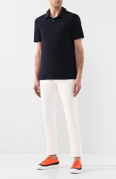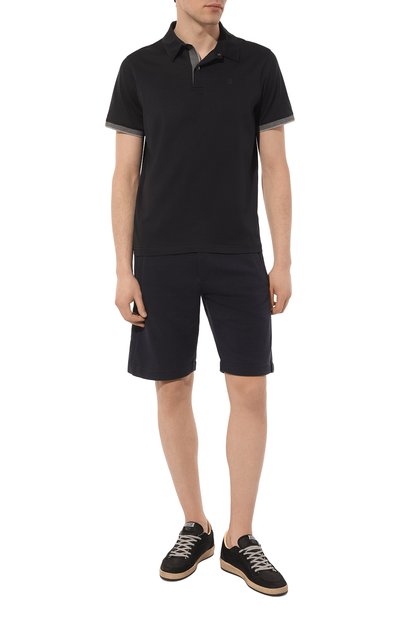 Поло Turbo с двойными термосварными швами изготовили из трикотажа bi-stretch на основе нейлона. Модель, застегивающуюся тремя брендированными кнопками, украсили рельефным логотипом спереди.