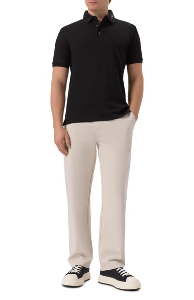 Поло Turbo с двойными термосварными швами изготовили из тр икотажа bi-stretch на основе нейлона. Модель, застегивающуюся тремя брендированными кнопками, украсили рельефным логотипом спереди.