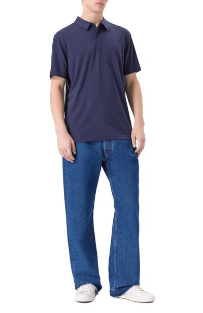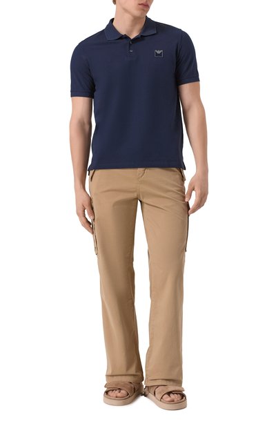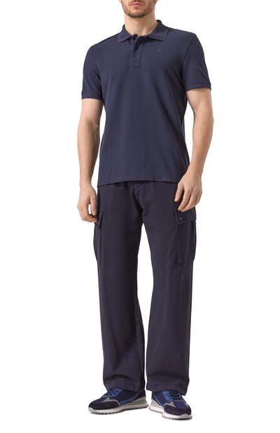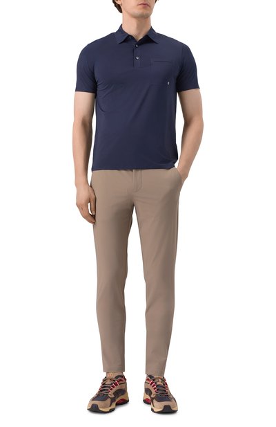Поло с рельефной эмблемой на груди выполнили из стрейчевого нейлонового трикотажа. Модель с двойными термосварными швами застегивается тремя брендированными кнопками.