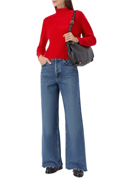 Свитер Tago кроя Regular fit связали из кашемировой пряжи. Круглую горловину модели, широкий пояс и манжеты рукавов реглан выполнили в технике резинки.