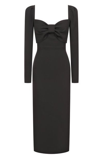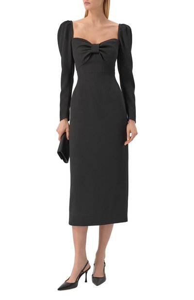 Модель в рубчик связали из вискозной пряжи с добавлением полиэстера. Облегающее платье Tuono c круглой горловиной и широкими манжетами наши стилисты предлагают сделать основой образа total black с туфлями на шпильке.