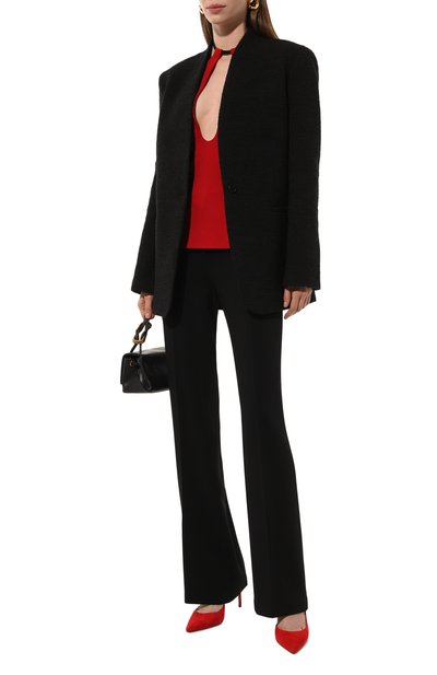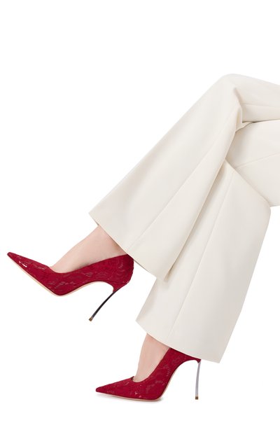 Туфли Vittoria со шпилькой высотой 100 мм сшиты из сетки. Кант на вырезе и стелька изделия выполнены из гладкой кожи. Модель с квадратным мысом украшена миниатюрной кристальной пряжкой спереди.