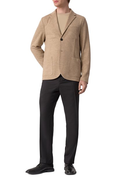 Однобортный пиджак кроя Regular fit удачно впишется в комфортные летние образы и с парными шортами, и с джинсами. Бесподкладочная модель с прямоугольными лацканами, двумя карманами и шлицей выполнена из чистого льна.
