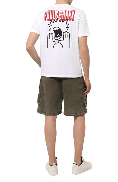В капсульную коллекцию Fantastic Green, созданную совместно с миланской графической компанией Giga Design Studio, вошла футболка из органического хлопка. На спинке модели силуэта oversize изобразили пса-робота, а на груди напечатали аббревиатуру BAU! по первым буквам фразы Business As Usual!.
