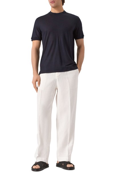 Футболка с круглой горловиной и узкими манжетами в рубчик выполнена из тонкого шерстяного джерси. Однотонная модель без декора гармонично дополнит базовый гардероб.