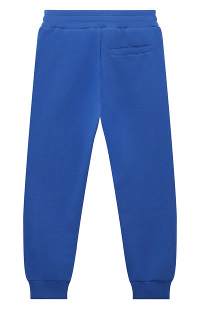 Брюки с эластичным поясом и боковыми карманами изготовили из эластичного полиэстерового трикотажа. Модель с хлопковым подкладом украсили патчем с вышитым логотипом и трехцветными полосатыми лампасами.