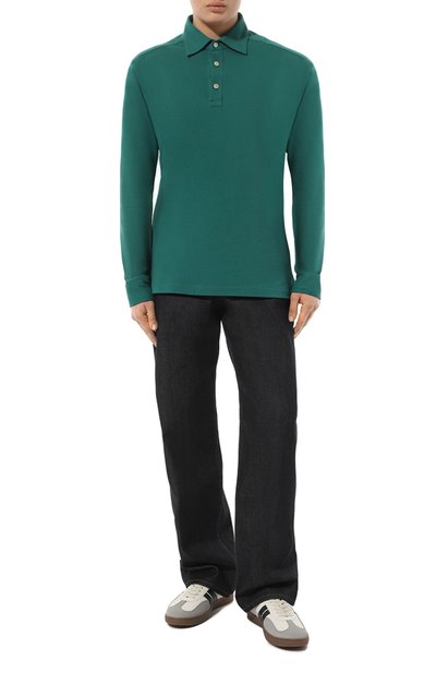 Поло с манжетами в рубчик сшили из хлопкового пике. Модель с эмблемой VLogo, вышитой нитью в тон, застегивается перламутровыми пуговицами.