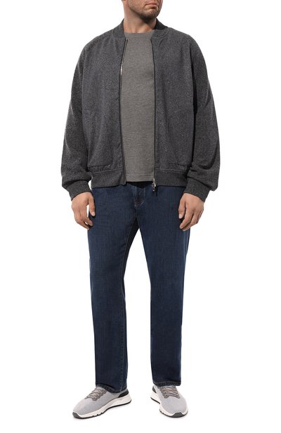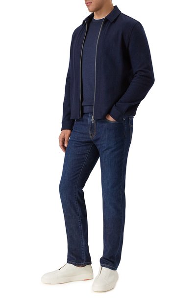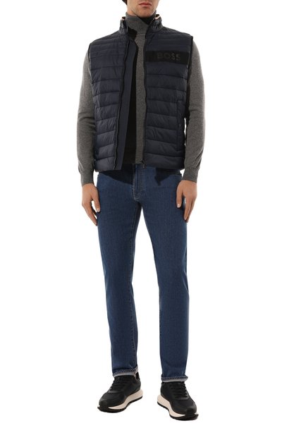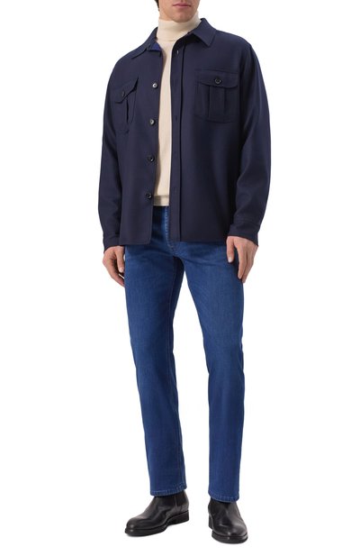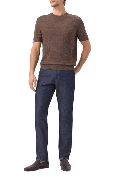 Прямые джинсы с пятью карманами выполнили из денима стрейч на основе лиоцелла, хлопка и модала с добавлением шелка. Лаконичную модель дополнили брендированным патчем на поясе сзади.