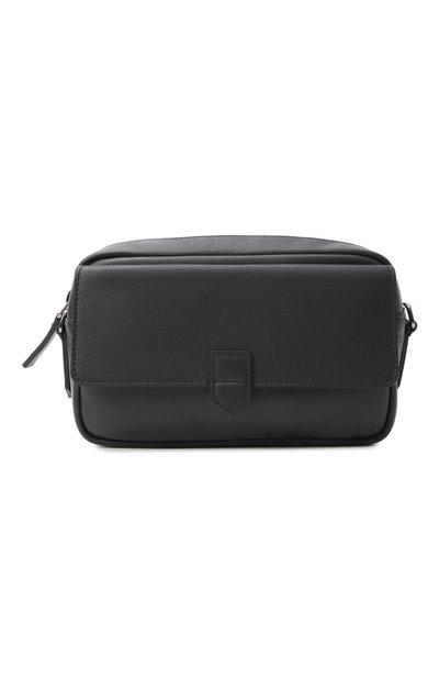 Сумку с тисненым логотипом спереди и на короткой ручке сзади сшили из матовой воловьей кожи. Помимо внешнего кармана с клапаном предусмотрели два внутренних – открытый и на молнии.
