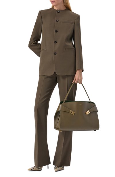 Сумку Hug с одной ручкой и застежкой-тоглом выполнили из гладкой телячьей кожи. Модель, дополненную внутри накладным карманом и разделительным с молнией, опоясывают ремешки с фирменными золотистыми пряжками Gancini.