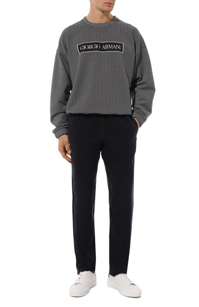 Свитшот в фирменную клетку Burberry Check со спущенной линией плеч выполнили из хлопкового трикотажа с добавлением полиэстера и эластана. Манжеты и пояс с логотипом марки в тон подчеркнули рельефными полосами.