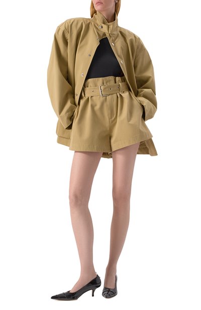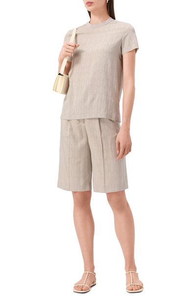 Шорты со стрелками и широкими отворотами поддержат летние образы с парным жакетом. Для пошива модели с четырьмя карманами использовали микс вискозы и шелка. Изделие застегивается молнией и крючком.