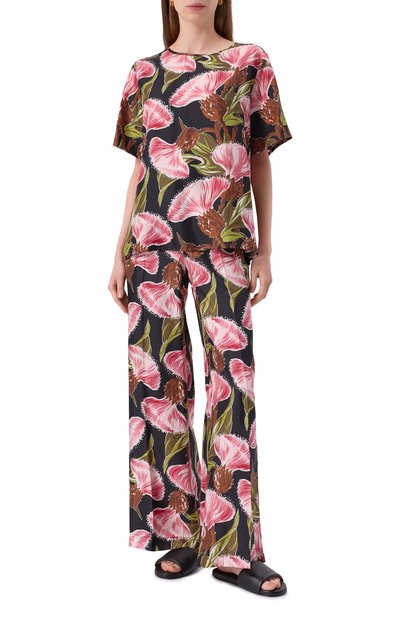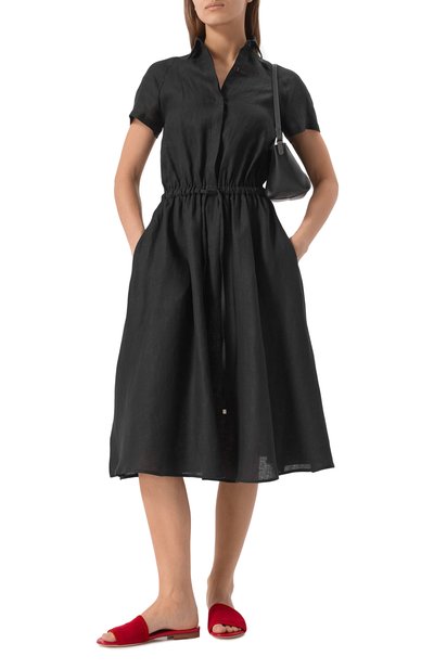 Широкую союзку шлепанцев на тонкой подошве выполнили из мелкозернистой кожи фирменного алого оттенка. Стельку из такого же материала декорировали тисненым логотипом марки.
