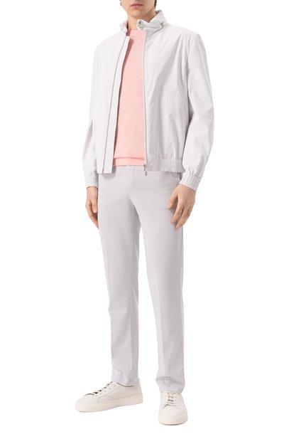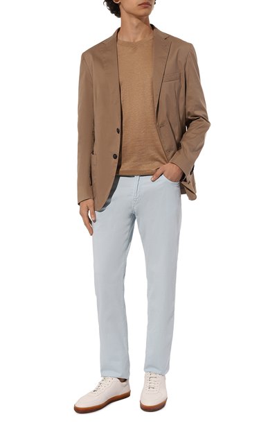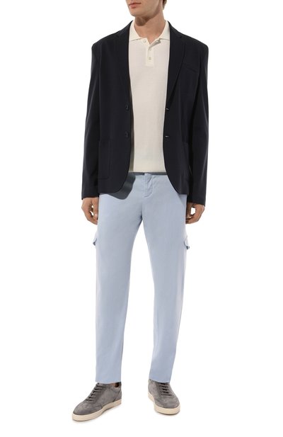 Зауженные брюки с низкой посадкой сшили из лиоцелла с добавлением эластана. Помимо боковых карманов предусмотрели два задних на пуговицах. К поясу пришили брендированный патч, которому вторит вышивка на одной из передних шлевок.