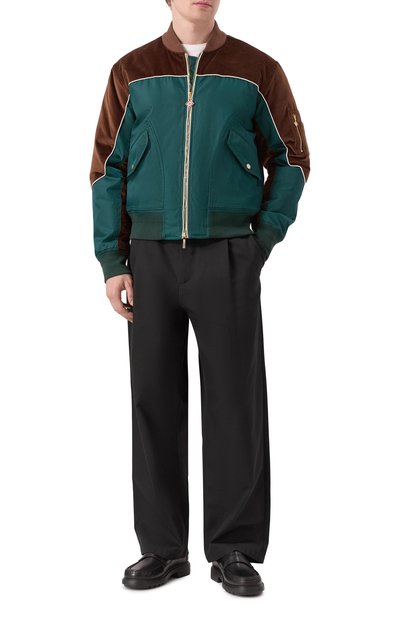 Бомбер из непродуваемого полиэстера, украшенный вышитым нитью в тон логотипом спереди, застегивается встречной молнией. Модель с воротником, манжетами и поясом из трикотажа в рубчик дополнили внутренним и тремя внешними карманами.