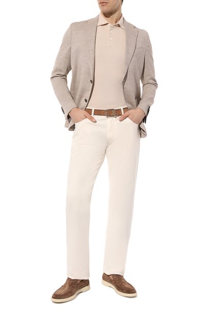 Джинсы с четырьмя карманами сшили из жесткого хлопкового денима. Модель, застегивающаяся потайной молнией и брендированной пуговицей, органично впишется в образ в любой цветовой гамме.