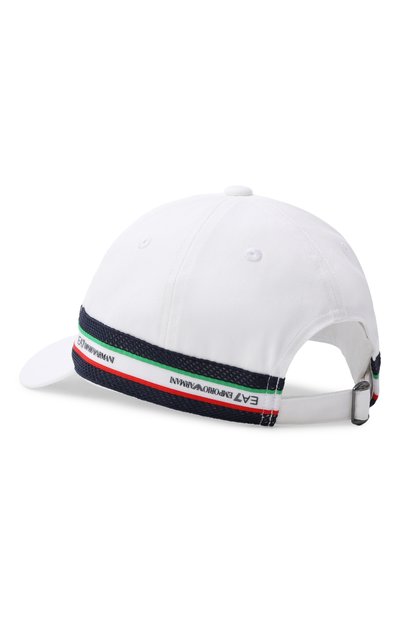 Бейсболку с прошитыми люверсами и пряжкой на регулируемом ремешке выполнили из хлопкового твила. О принадлежности аксессуара бренду говорит рельефный логотип, вышитый спереди контрастной нитью.