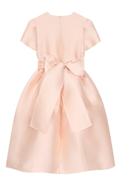 Атласное платье Peonia с поясом, завязывающимся на бант, сшито из шелковистой ткани микадо. Расклешенный подол изделия дополнен тюлевым подкладом, создающим объем. Модель застегивается потайной молнией сзади.